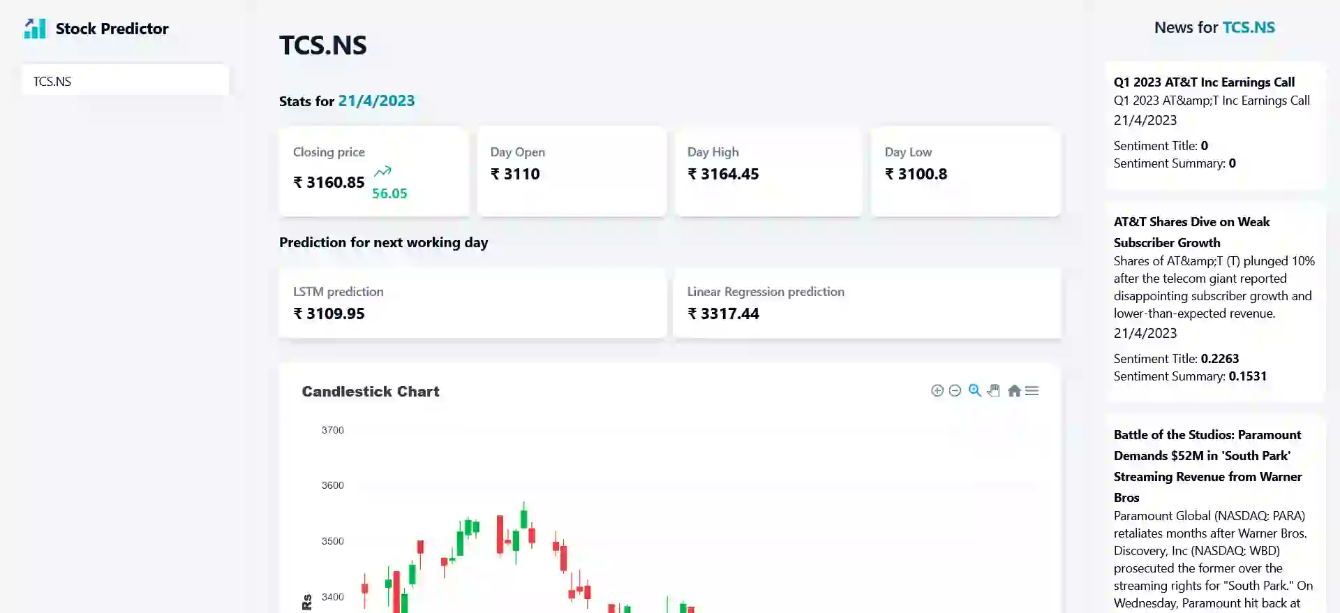 Get prediction of opening and closing price of stocks price. Frontend is made using Reactjs and backend is made using Flask and Machine learning model are trained using Tensorflow